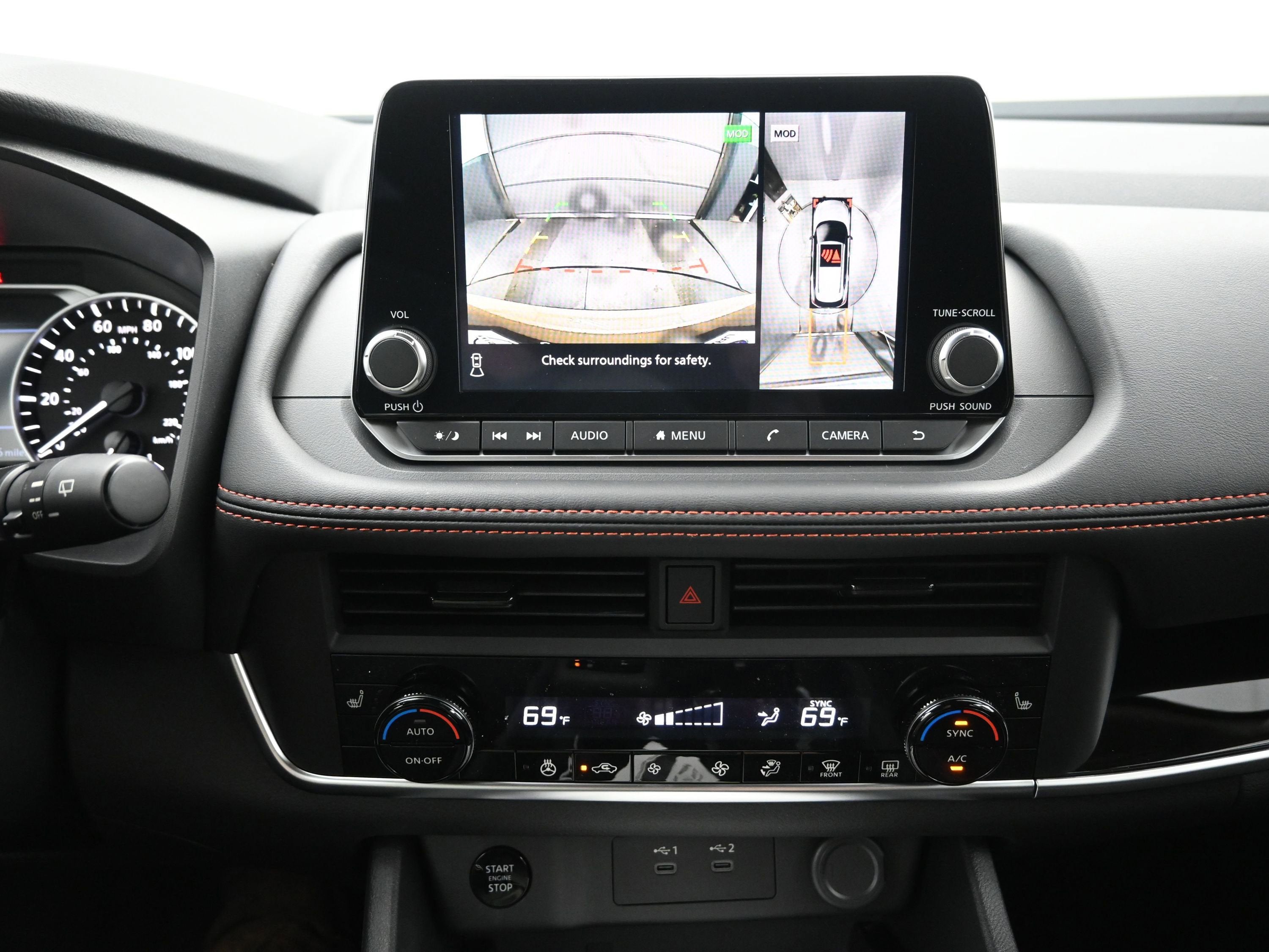 - Radio: AM/FM NissanConnect -inc: 6 speakers plus 2 tweeters, Apple CarPlay, Android Auto, 8" color touch screen display, Bluetooth®, 2 front USB type-C, Wi-Fi hotspot and NissanConnect Services powered by SiriusXM
