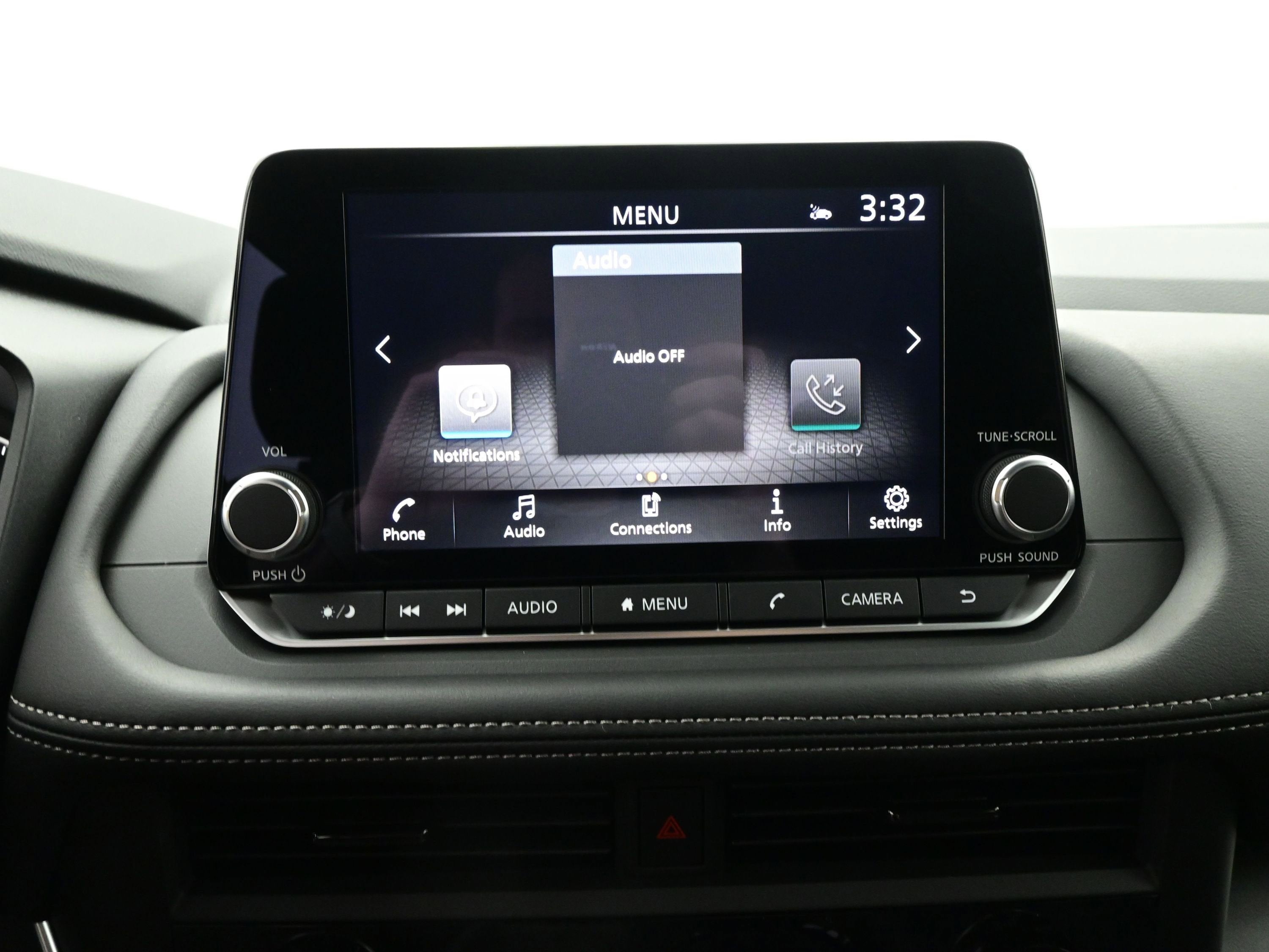 - Radio: AM/FM NissanConnect -inc: 6 speakers plus 2 tweeters, Apple CarPlay, Android Auto, 8" color touch screen display, Bluetooth®, 2 front USB type-C, Wi-Fi hotspot and NissanConnect Services powered by SiriusXM