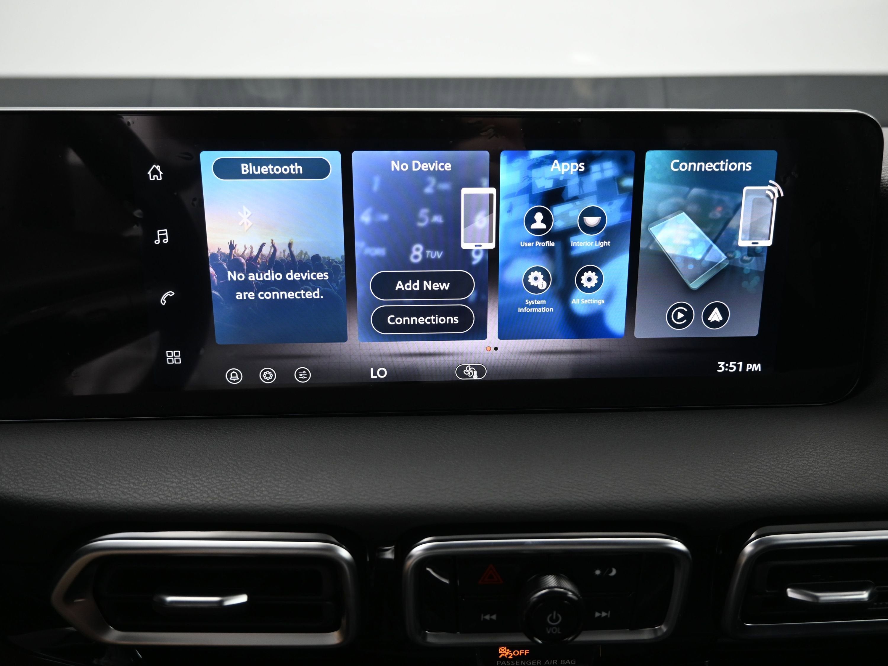 - Radio: AM/FM w/RDS/MP3 -inc: 4 speakers, 12.3" NissanConnect multimedia center display, Bluetooth® hands-free phone system, streaming audio via Bluetooth®, hands-free text messaging assistant, Siri Eyes Free, Google Assistant voice recognition, wireless Apple CarPlay and Android Auto and (2) front USB connection port (type C)