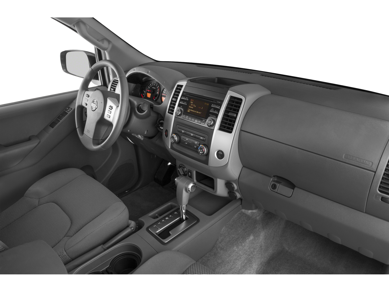 The interior of this 2015 Nissan Frontier SV is designed for comfort and practicality. The Cloth Seats in Steel offer a comfortable seating surface for both short commutes and long drives. The Adjustable Steering Wheel allows you to find the perfect driving position, while Cruise Control makes highway driving a breeze. Stay comfortable with the Automatic climate control, while Power Windows and Power Door Locks add convenience. The Heated front seats provide extra warmth on chilly mornings. The Keyless Entry system allows for easy access to the vehicle. The Frontier also features a Pass-Through Rear Seat and Folding rear seats, providing flexible cargo options.