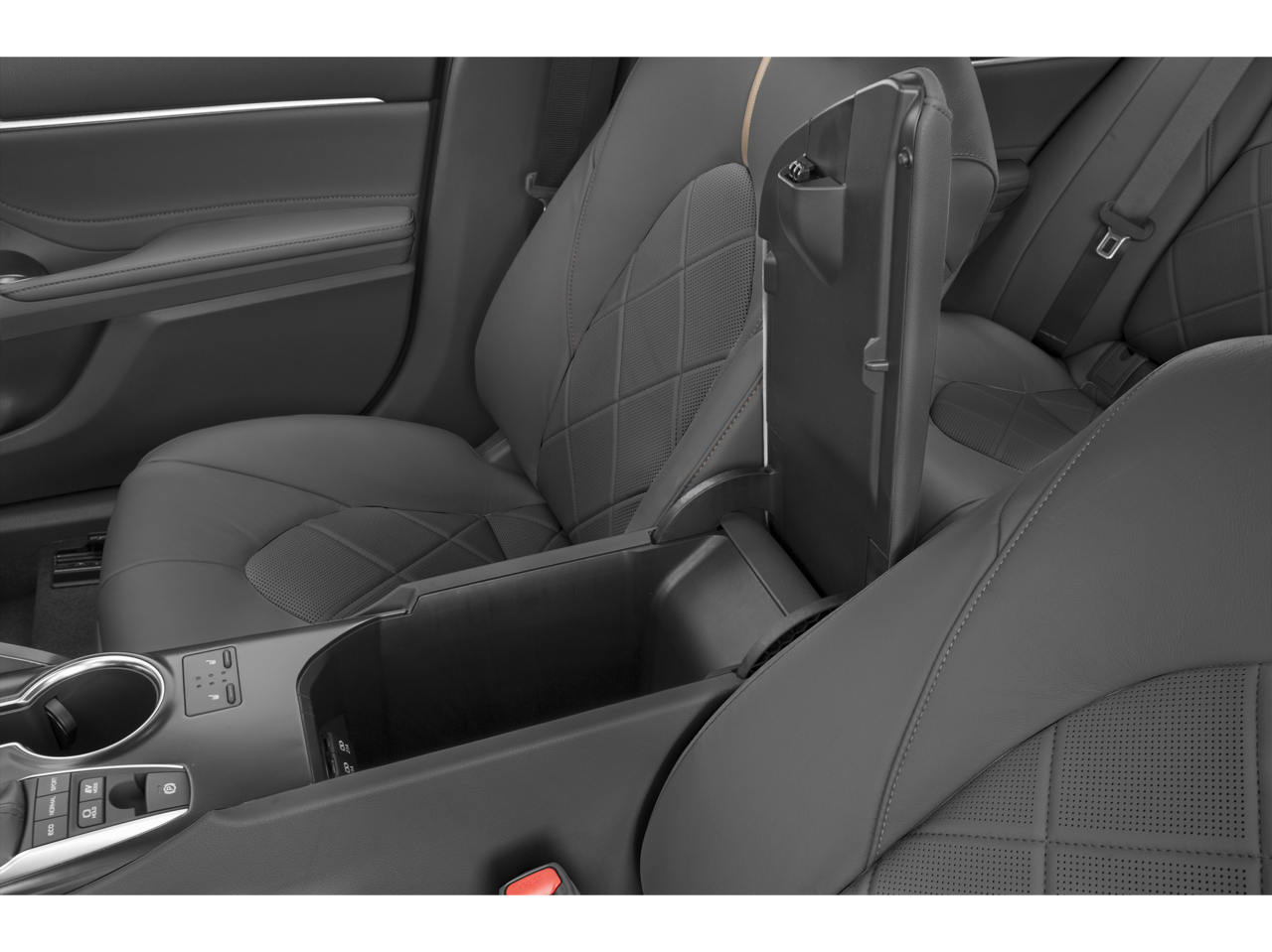 Safety is paramount in the Camry Hybrid XLE, equipped with Toyota Safety Sense P. This suite includes Adaptive Cruise Control, Lane Departure Alert with Steering Assist, and Pre-Collision System with Pedestrian Detection. The Blind Spot Monitor with Rear Cross-Traffic Alert adds an extra layer of protection. Inside, the leather-trimmed seats with heated front seats and dual-zone climate control promise comfort for all passengers. The auto-dimming rearview mirror and HomeLink garage door opener add to the convenience and comfort for every journey.