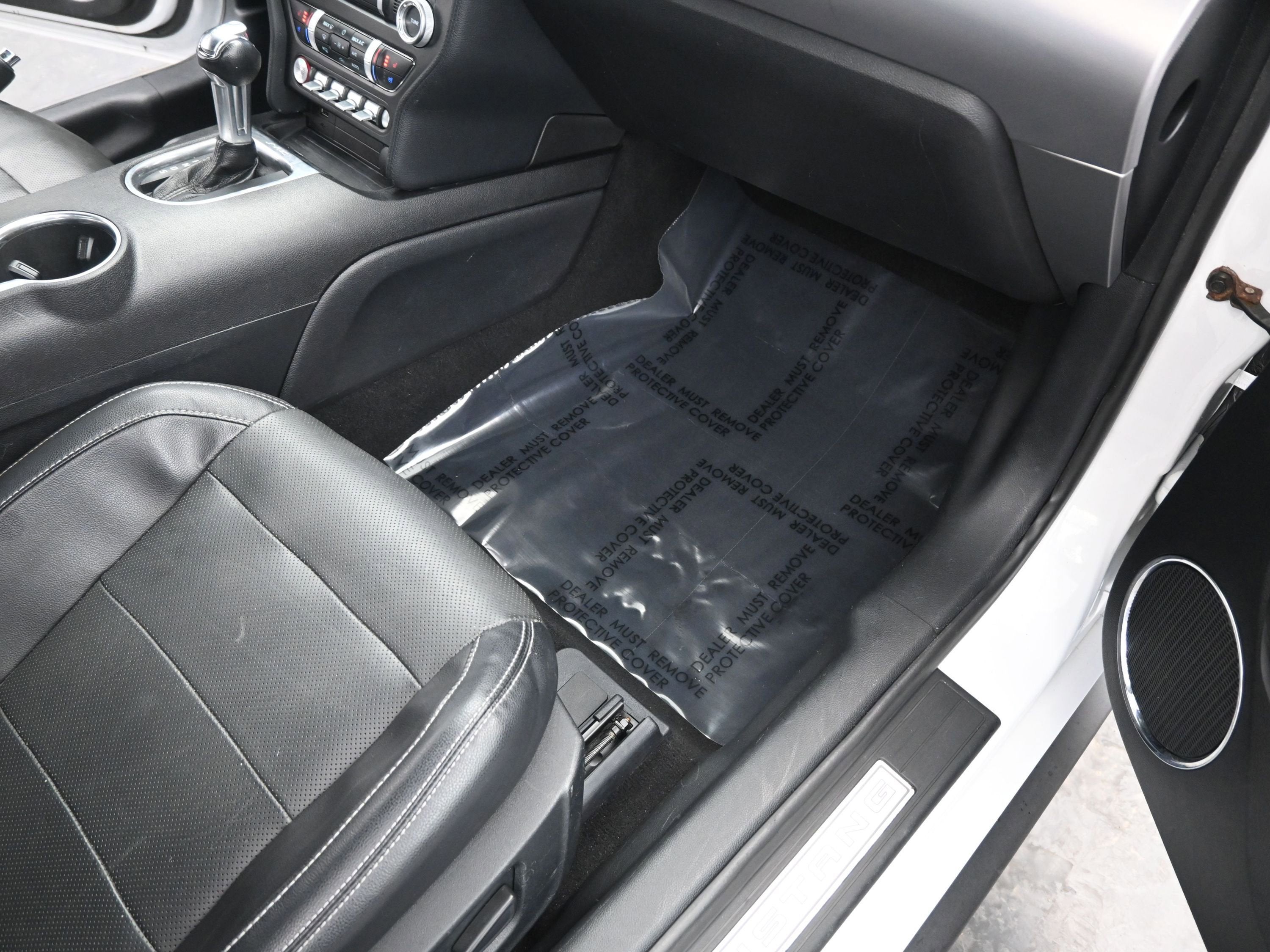 Turn heads with the Mustang's Oxford White exterior, accented by 18-inch machined aluminum wheels and a sleek rear spoiler. The body-colored bumpers and mirrors give it a streamlined appearance, while the LED fog lights and projector beam headlights provide a striking presence both day and night. The Easy Fuel capless fuel filler makes refueling a breeze, allowing you to focus on the journey ahead.
