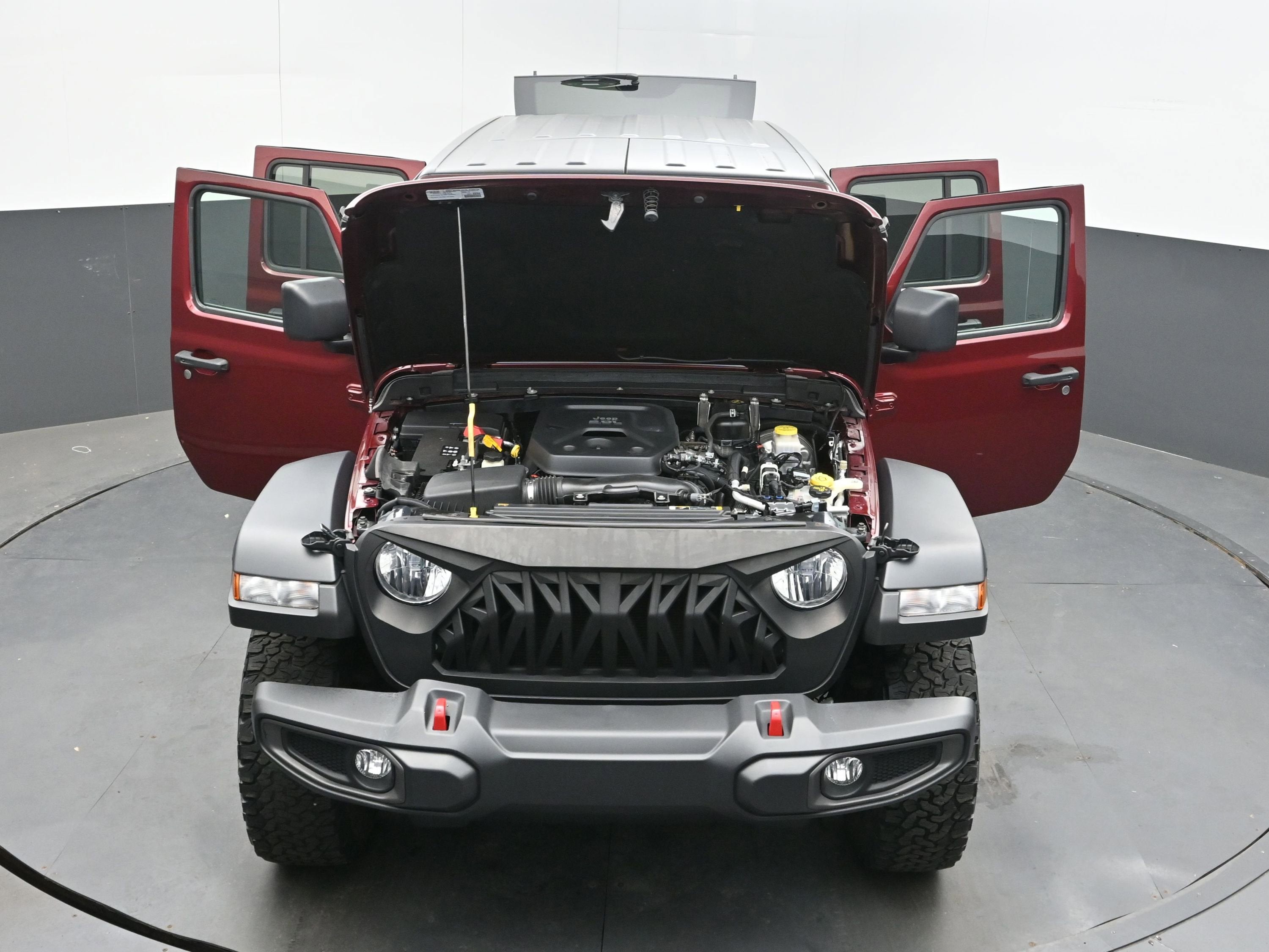 The 2021 Jeep Wrangler Unlimited Rubicon 4x4 commands attention with its rugged and iconic design. The striking Snazzberry Pearlcoat exterior finish is sure to turn heads, while the 17' X 7.5' Machined with Black Pockets Wheels add a touch of style. The Black fender flares and Body-color grille with colored accents enhance the vehicle's aggressive stance. The Convertible roof allows you to enjoy open-air freedom, and the Tow Hooks provide added utility for your adventures. With features like Daytime Running Lights and Front fog lights, this Wrangler is designed for both style and functionality.