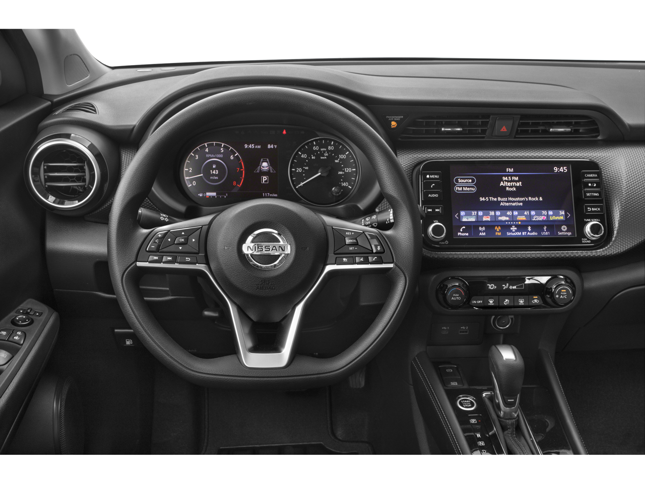 Safety is paramount in the Nissan Kicks, which includes advanced features like Automatic Emergency Braking with Pedestrian Detection, Blind Spot Warning, and Lane Departure Warning. The RearView Monitor and Rear Automatic Braking assist in parking and reversing, making city driving a breeze. Inside, comfort is key with automatic climate control, charcoal cloth seat trim, and a spacious interior that comfortably seats five.
