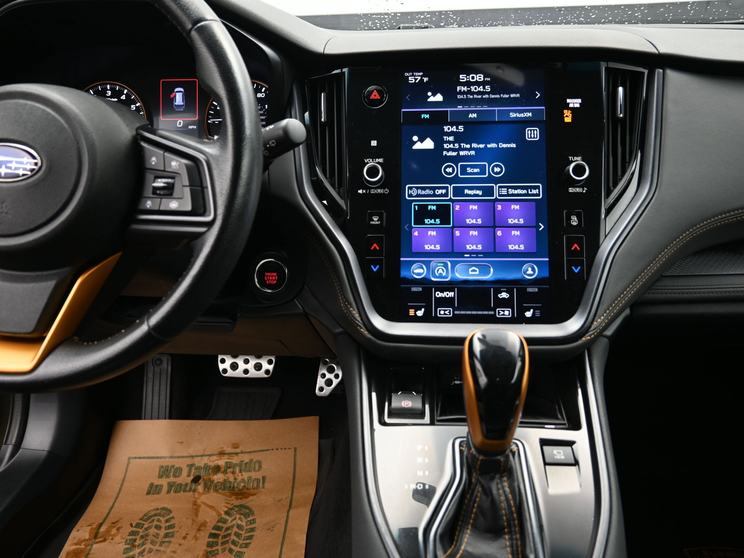 Safety is paramount in the Outback Wilderness, featuring EyeSight Advanced Adaptive Cruise Control, Blind Spot Detection, and Reverse Automatic Braking to keep you and your loved ones secure. The LED headlights with Steering Responsive Headlights (SRH) enhance visibility around curves, ideal for night drives. Inside, the luxurious StarTex leatherette upholstery with yellow stitching offers both style and comfort, complemented by heated front and rear seats to keep everyone cozy during chilly winter mornings.