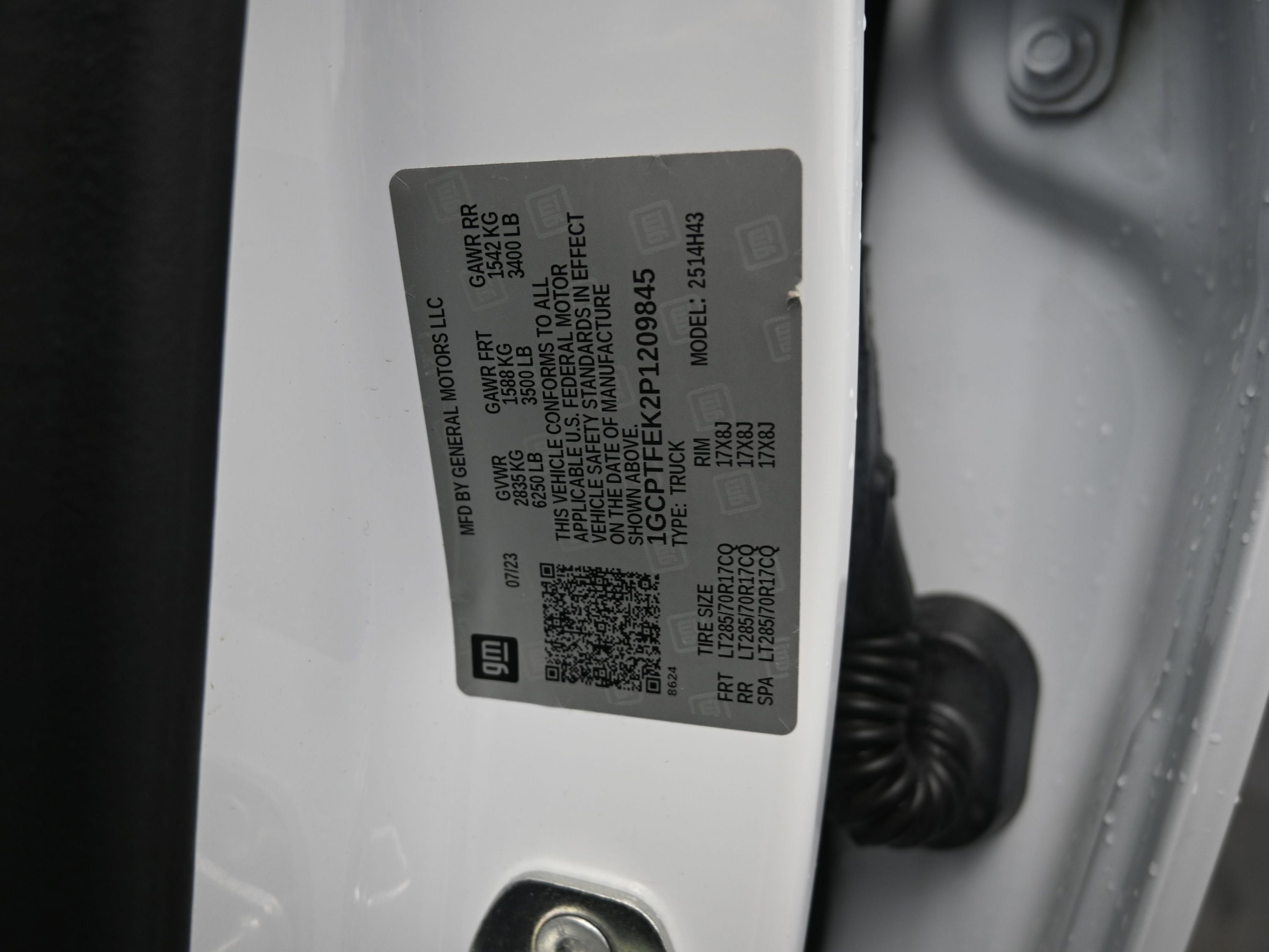 - GVWR, 6250 lbs. (2835 kg)