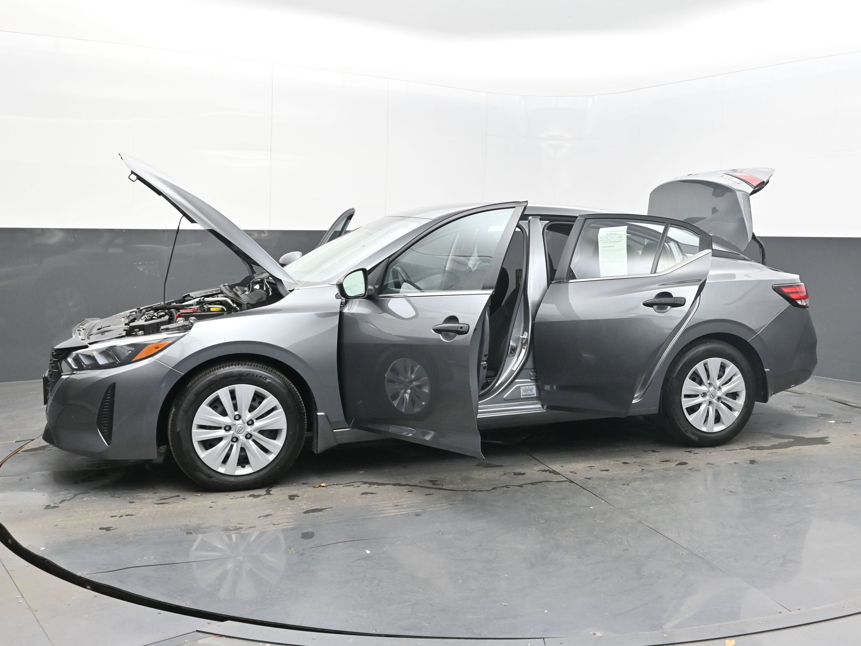Turn heads with the Sentra's Gun Metallic exterior, complemented by body-colored splash guards and a black grille with chrome accents. The sleek design is both modern and functional, featuring 16-inch steel wheels with full wheel covers and light-tinted windows for added privacy.